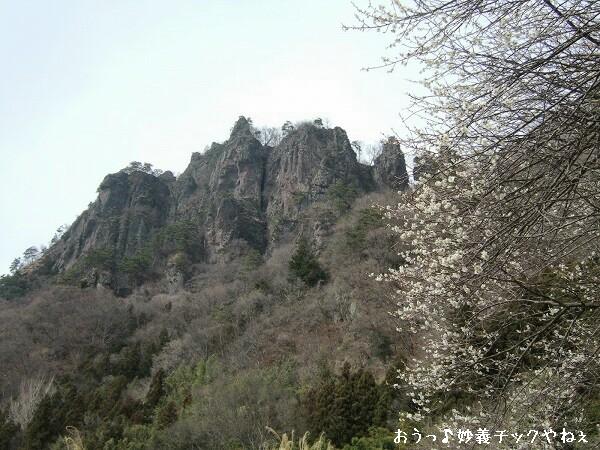 吾妻に行くと、岸壁がそびえ立つ岩山が見える。